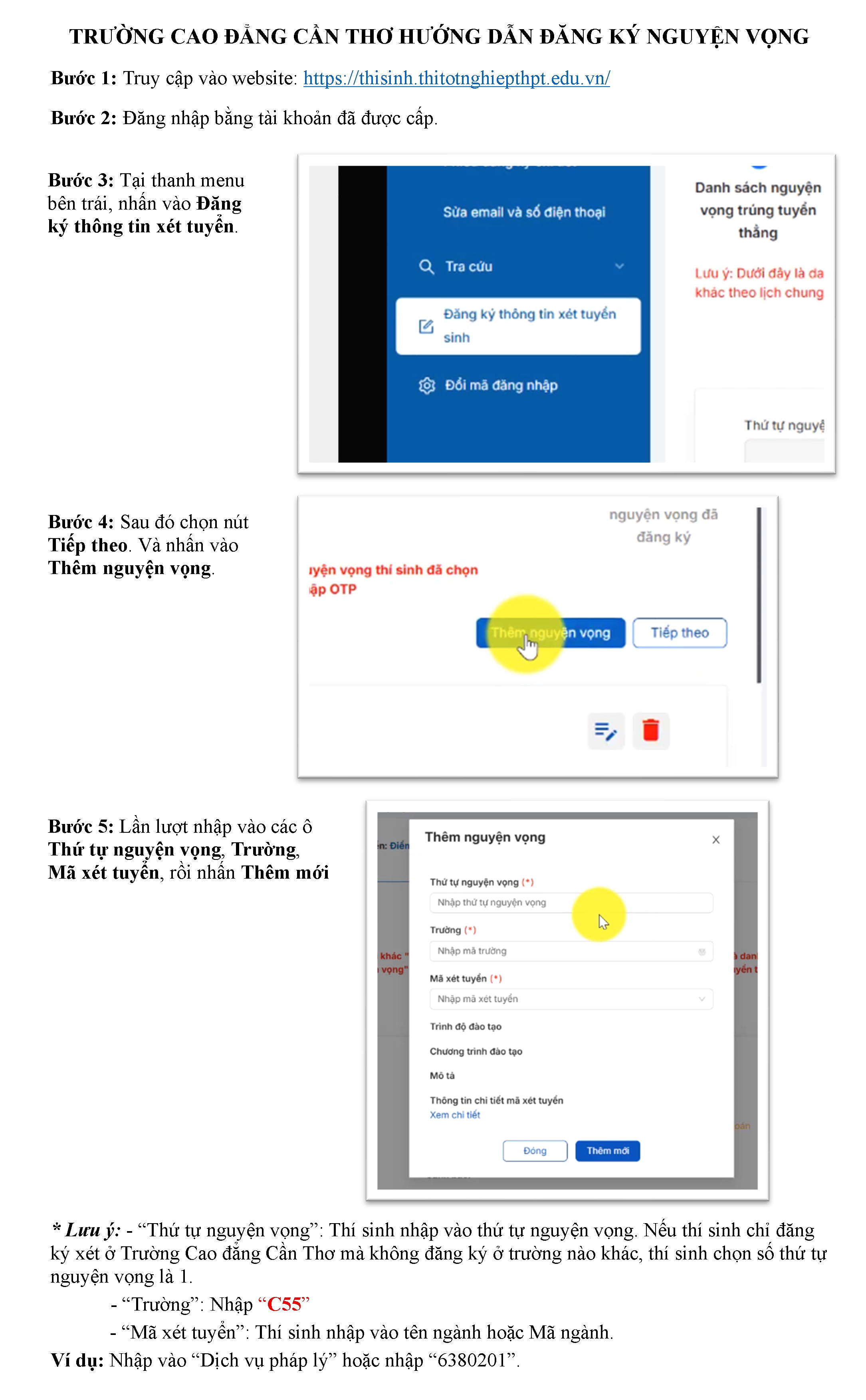 Trường Cao đẳng Cần Thơ hướng dẫn đến thí sinh đăng ký nguyện vọng: