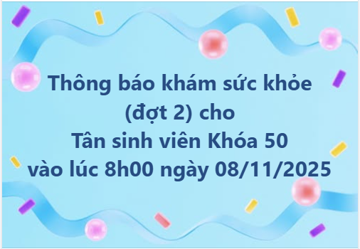Nhà trường thông báo đến toàn thể Tân sinh viên Khóa 50 về lịch khám sức khỏe đợt 2 như sau: